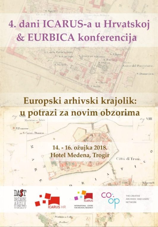 ICARUS Hrvatska u suradnji s konzorcijem ICARUS (International Center for Archival Research / Međunarodni centar za arhivska istraživanja), Državnim arhivom u Splitu, EURBICA — Europskim regionalnim ogrankom Međunarodnog arhivskoga vijeća i drugim partnerima, organizira 4. dane ICARUS-a u Hrvatskoj pod nazivom European archival landscape: Reaching out for new horizons, koji će se održati u Trogiru, Hotel Medena, 14. — 16. ožujka 2018.